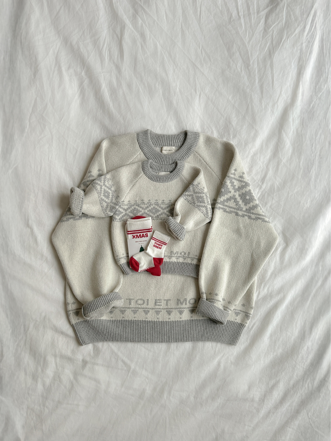 shop nowUnser TOI ET MOI Strickpullover ist weich, kuschelig und hält kleine Entdecker in der kalten Jahreszeit warm. Für den Partnerlook gibt es ihn auch für die Klein und Groß, das macht ihn zum idealen Weihnachtsgeschenk für die ganze Familie.